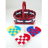 ・親子で作る ノルウェー国旗色の エコクラフトのかご&ハートのオーナメント